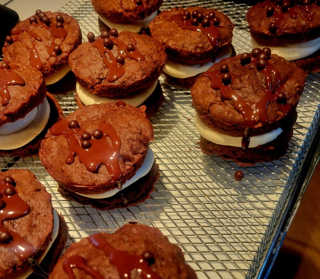 - Énorme biscuit aux pépites de chocolat fourré à la crème au beurre